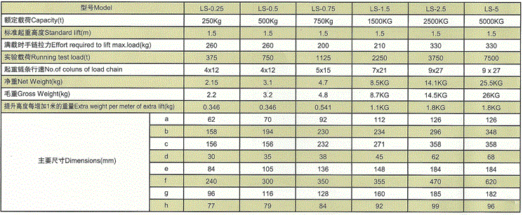 川崎LS系列迷你手扳葫蘆參數(shù):